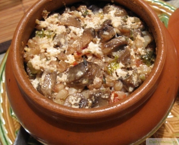 вода, гречневая крупа ядрица, лук репчатый, морковь, белый гриб сушеный, масло оливковое