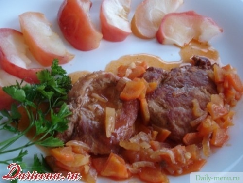 свинина вырезка, яблоки, вода, морковь, лук репчатый, томатная паста, масло подсолнечное, чеснок, соль поваренная пищевая, перец черный молотый