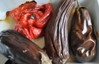 баклажаны, мука пшеничная , перец красный сладкий, масло сливочное 72%, яйцо куриное, лук репчатый, сок лимонный, масло оливковое, розмарин, чеснок, соль поваренная пищевая, перец черный молотый